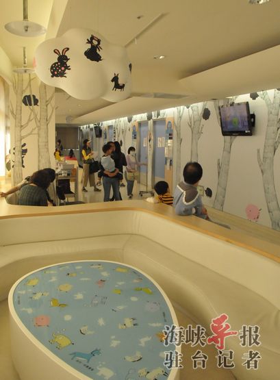 粉色的云狀沙發、可愛的木馬板凳,一個巨型的永動游戲機……在這里,你聞不到藥水味,也很少聽到哭聲,有看到一次哭聲是因為大人要帶小孩離開醫院,小孩子迷戀那個永動游戲機,趴在地上看都不想被抱出去。