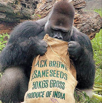 資料顯示,公成年金剛猩猩背上有象征年長的銀白長毛,有人稱之“銀背”。性情溫和、重視家庭,生氣時會搥胸吼叫。幼年期的搥胸動作多為表達滿足之意,成年時的搥胸意義復雜,有時用來警告入侵者。