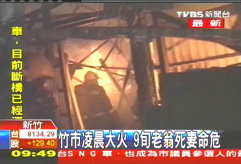 中新網(wǎng)4月26日電 據(jù)臺(tái)灣TVBS報(bào)道,26日凌晨2點(diǎn)多,新竹市凌晨發(fā)生一起死亡火警!一對(duì)高齡90歲的蔡姓老翁和88歲的妻子,被人發(fā)現(xiàn)他們的房子陷入火海,立刻打119報(bào)警,消防局出動(dòng)大批人力趕到現(xiàn)場(chǎng)搶救,但因?yàn)榛饎?shì)猛烈,老婦人全身90%以上二度灼傷,被送醫(yī)急救,有生命危險(xiǎn),而有糖尿病被截肢坐在輪椅上的丈夫,因?yàn)樘由患埃恍颐鼏驶鹂摺?table border=0 cellspacing=0 cellpadding=0 align=left>