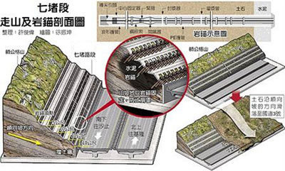 中新網(wǎng)4月27日電 據(jù)臺灣《中國時報》報道,島內(nèi)交通要道“國道三號”七堵段山體崩塌,疑因滑動規(guī)模超出巖錨防護設(shè)計。臺“交通部國道新建工程局”26日調(diào)出當年設(shè)計規(guī)劃圖,經(jīng)比對災變現(xiàn)場,發(fā)現(xiàn)地質(zhì)和滑動情況今昔并無不同,疑因山崩能量超出當初防護規(guī)模,連打進30多米深的巖錨,也擋不住大自然反撲力量。