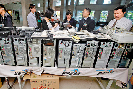 臺灣“刑事局”偵一隊、臺北縣市刑偵大隊昨天兵分十五路查緝,直搗集團核心機房,查扣四十九臺電腦、電話機九十具、手機六十七支及現金十一萬,逮捕主嫌陳光著等32人。