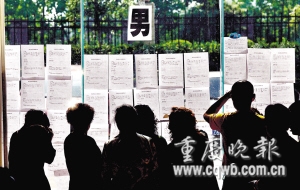 現(xiàn)場資料顯示,女士們學(xué)歷幾乎全在本科以上,其中不乏碩士與博士。33歲的博士劉小姐是大坪醫(yī)院醫(yī)生,她母親說,未來女婿只要本科以上就可以了。西南政法大學(xué)教師、碩士學(xué)歷的朱小姐要求男方大專以上,月收入2000元即可。碩士學(xué)歷、在重慶漫畫基地工作的丁嫻,她母親表示,希望未來女婿不要被女兒1.70米的身高嚇跑。“只要合得來,外在條件不是最重要的。”
