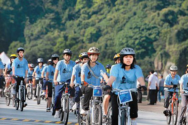 中新網4月22日電 據臺灣《中國時報》報道,臺北縣19所高中職校1000余名學生,參加縣府舉辦的“單車成年禮”活動,21日有520名學生挑戰成功,22日還有560名學生要挑戰90公里的單車旅程。