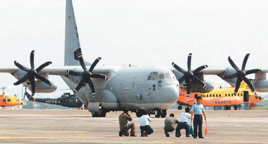 中新網(wǎng)8月17日電 16日下午2點多,一架來自美軍琉球基地的C-130運輸機,降落在臺灣空軍臺南基地,卸下物資后隨即飛走,在臺停留時間不到一小時。這是自1979年“斷交”以來,首度有美軍軍機在臺灣降落。今天預計還有兩架直升機抵臺,執(zhí)行山區(qū)吊掛、人員運送等救災任務。