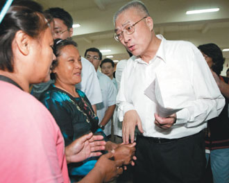 吳敦義帶著“內政部”、“經建會”等官員,搭乘行政專機直飛南部災區(qū)探視災民、災區(qū)。他說,“災民睡行軍床,我也睡一樣的行軍床”,零距離聽災民的抱怨,親自解決災民的煩惱。