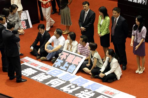 民進黨團的阻撓行為導致議事延誤逾一小時。近中午時,雖然吳敦義順利上臺,但在藍綠“立委”的雙重人墻包圍下,僅報告約10分鐘即結束。在隨后的總質詢中,吳敦義接任“行政院長”前的香港之行,成為民進黨“立委”質疑焦點。