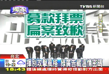 民進黨3支廣告里都有密碼,第一波擦亮招牌,最經典的鞠躬畫面,代表誠意募款,更隱含著對風風雨雨的扁案,那沒說出口的歉意。蔡英文在廣告中表示:“我們經常被問,民進黨的理想性是否仍在?”