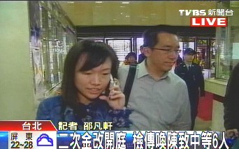 中新網2月8日電 據臺灣TVBS報道,陳水扁家族涉及“二次金改”弊案8日首度開庭,陳致中、陳幸妤跟舅舅吳景茂夫婦等6名被告都被傳喚到案。