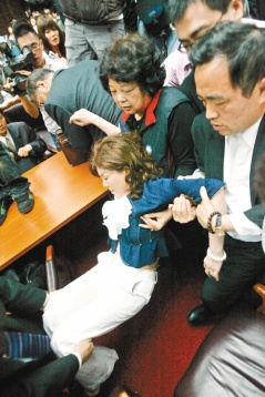 9時17分,會議主席趙麗云昏倒,國民黨“立委”協助送臺大醫院;9時50分,受傷的民進黨“立委”管碧玲、陳亭妃也由同黨籍“立委”陪同,搭救護車前往臺大醫院就醫。