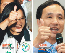 中新網6月1日電 據臺灣《聯合晚報》報道,民進黨主席蔡英文周六前往高雄出席活動,國民黨新北市長參選人朱立倫周三提前南下,與黨籍市長參選人黃昭順“北高輝映”,周四和臺北市長郝龍斌一同舉行“北北共榮”記者會。“英倫”兩人捉對廝殺,戰場將從新北市擴及全臺“五都”。