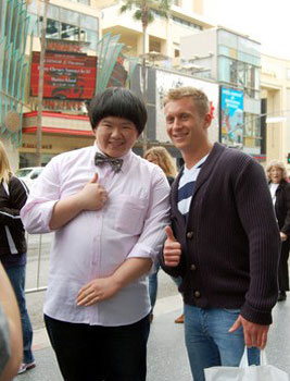 中新網(wǎng)4月23日電 據(jù)“中央社”報(bào)道,臺(tái)“小胖”林育群23日前往洛杉磯好萊塢星光大道朝圣,因?yàn)榫W(wǎng)絡(luò)上的高點(diǎn)擊率與脫口秀節(jié)目的訪問,小胖一路上頻頻被路人認(rèn)出,還有老外call out,當(dāng)場電話連線。
