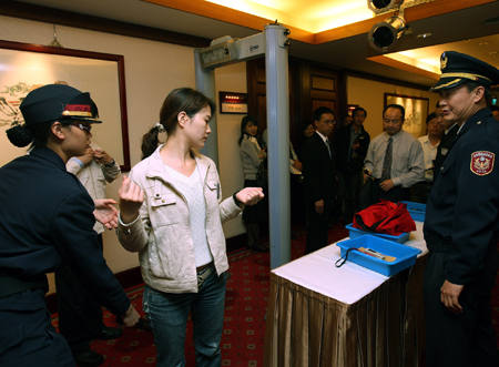 據(jù)臺灣中時電子報報道,陳水扁出席活動之前,所有與會人員在會場外大排長龍,等候接受安全檢查。由于陳水扁自爆全家遭恐嚇,安檢規(guī)格等級提高,要求所有來賓不但要主動打開背包,還要脫下外套給安檢人員驗看,強制接受安檢。