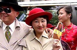 中新網12月19日電 今天是臺灣第七屆“立委”選舉號次抽簽日,國民黨臺中市參選人盧秀燕別出心裁,在丈夫的陪同下,以電影《色戒》男女主角裝扮亮相。