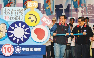 “大選”參選人馬英九致詞時訴求拼經濟與政黨輪替,呼吁選民踴躍投票讓藍營“立法院”席次過半。