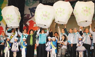 謝長廷總部動員一千個高雄長昌會及33個后援會,晚會場地涌入5萬人潮,現場并升祈福天燈。民進黨五位“立委”候選人在“母雞”謝長廷帶領下同臺拉抬選情,高雄市長陳菊也到場助陣。