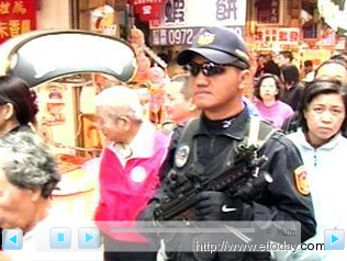據臺灣東森新聞報道,謝長廷一路和支持者寒喧握手、發放紅包,原本人潮密集的街道更是寸步難行,兩名特勤中隊隊員全副武裝隨侍在側,就這么大剌剌的把MP5沖鋒槍和M4突擊步槍掛在胸前,拜年掃街的氣氛相當詭異。