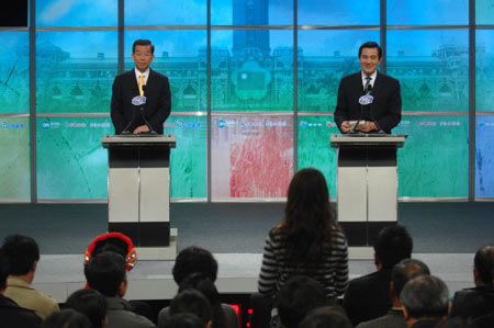 中新網(wǎng)2月28日電 馬英九、謝長廷在第一場電視辯論中,主辦單位依照兩陣營提供的身高,特制了一塊板子給身高比較小的謝長廷,不過最后在屏幕上看起來卻是謝長廷比較高,這讓將要辦政見會(huì)的“中選會(huì)”還特地再打了一次電話,確認(rèn)馬謝兩個(gè)人的高度。