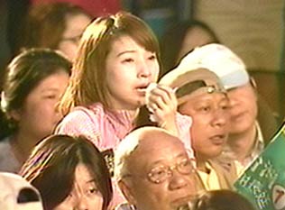 據(jù)臺(tái)灣東森新聞報(bào)道,雖然馬英九陣營已自行宣布當(dāng)選,不過臺(tái)北市的長昌總部仍有大批支持者留守,高舉旗幟、呼喊口號(hào)。看到謝長廷慘敗,支持者在臺(tái)下忍不住拭淚,但仍努力打起精神,跟著民代大呼口號(hào),持續(xù)為民進(jìn)黨打氣加油。