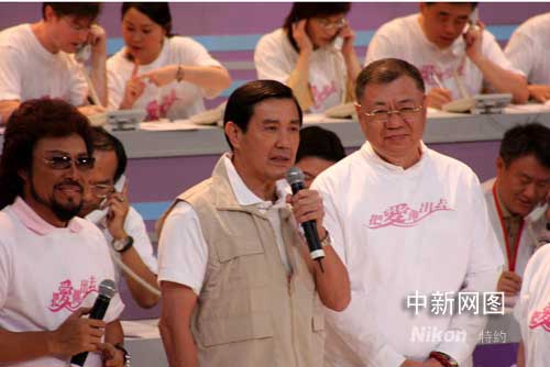 5月18日晚,馬英九和夫人周美青參加當地電視臺和紅十字會等為四川賑災募款的“把愛傳出去”晚會。