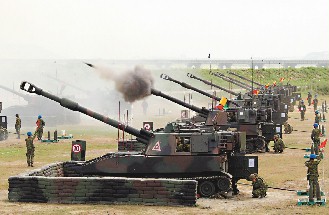 據(jù)臺灣《聯(lián)合報(bào)》報(bào)道,此次操演項(xiàng)目包括12門M109A5自走炮,在大甲溪出海口操演反舟波射擊,臺軍官兵循1門、3門、6門及12門的翼次及連續(xù)群射方式,對3000米遠(yuǎn)的海上目標(biāo)區(qū)射擊,現(xiàn)場炮聲隆隆、硝煙四起,海面上目標(biāo)區(qū)震起水柱,完成108發(fā)炮彈的射擊訓(xùn)練。