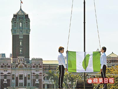 臺(tái)灣《蘋果日?qǐng)?bào)》9日?qǐng)?bào)道,臺(tái)灣“獨(dú)派”團(tuán)體“9.08臺(tái)灣國(guó)”聯(lián)盟昨天在臺(tái)北市凱達(dá)格蘭大道上舉行升“臺(tái)灣國(guó)旗”鬧劇,并由“臺(tái)灣公民社”秘書長(zhǎng)廖林麗玲宣讀所謂的“臺(tái)灣國(guó)宣言”,叫囂終結(jié)“中華民國(guó)體制”,邁向“臺(tái)灣建國(guó)”之路。