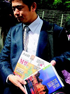 陳水扁辯護律師鄭文龍,13日上午帶了三本書說要送給陳水扁閱讀。圖片來源:臺灣《聯合晚報》