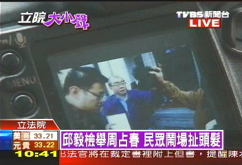 中新網(wǎng)12月15日電 綜合臺灣媒體報道,陳水扁日前遭到無保釋放,“立委”邱毅今天(15日)前往“監(jiān)察院”檢舉承辦法官周占春瀆職,不過沒想到步出“監(jiān)察院”時,與綠營民眾發(fā)生肢體沖突,甚至有人一把扯下邱毅的頭發(fā)。