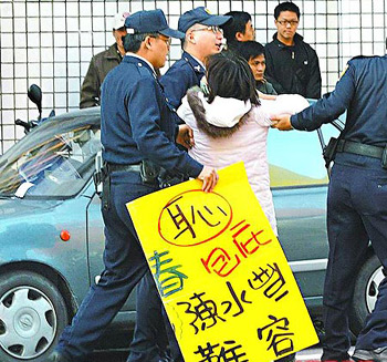 一名女子跑到挺扁群眾里嗆扁,遭警方帶離
