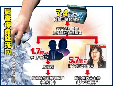 據了解,陳致中、黃睿靚上月透過律師遞狀,表達有意認罪協商時,主動提供至少6個海外密帳,其中1個兩人在瑞士公司賬戶內,確實存有巨額美金,折合近5.7億元,錢的來源就是國泰世華保險室。為追回這筆贓款,檢方目前傾向列入認罪協商條件,逼陳致中夫婦將錢匯回。