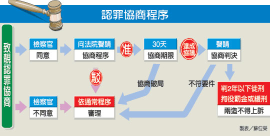 何謂“認罪協商”?簡單說就是被告認罪后,與檢察官、法官針對罪名、刑度等相關事項進行協商的刑事訴訟制度。在認罪協商程序中,被告須與檢察官協商罪名、刑度后,向法院陳報,經法院同意下開庭制作“協商筆錄”,即完成協商程序,案件就不能再上訴,宣告定讞。不過,公訴檢察官在與被告協商前,必須先征詢偵查檢察官的意見,甚至還要經檢察長批示準許后,才能實施。
