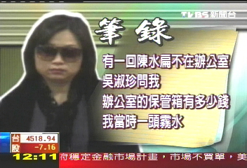 陳水扁任內出納陳鎮慧向臺灣特偵組供出,陳水扁在“總統府”內的辦公室有一個小型金庫,專門用來存放他向企業募來的“私房錢”。圖片來源:臺灣TVBS