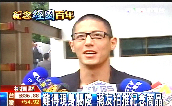 主辦單位邀請(qǐng)蔣友柏為活動(dòng)設(shè)計(jì)紀(jì)念商品,這才讓向來(lái)低調(diào)的他愿意出席,理平頭的蔣友柏成了謁陵儀式中,最搶鏡頭的人。