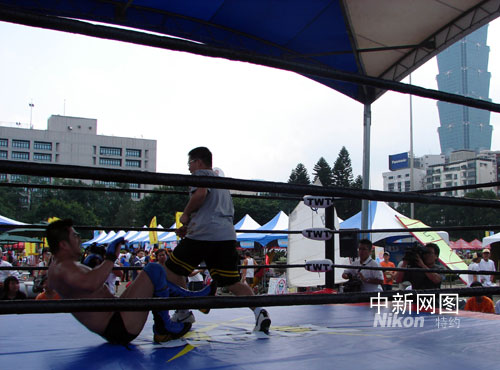 九個(gè)展區(qū)、一百六十二個(gè)攤位,處處都很熱鬧。臺(tái)灣明年九月要舉辦“聽(tīng)障奧運(yùn)”,殘障人士組織的“阿甘精神發(fā)展協(xié)會(huì)”的攤位放在很顯眼的地方;“臺(tái)灣摔角聯(lián)盟”搭起了高臺(tái),正在現(xiàn)場(chǎng)示范教學(xué),大力士裝著一次又一次地被重重摔在角斗臺(tái)上,惹得幾個(gè)學(xué)生模樣的小孩蠢蠢欲動(dòng),爭(zhēng)著要跟大力士切搓。