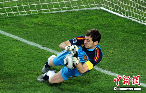 隨后巴拉圭再度換上一個(gè)前鋒,意圖殊死一搏,但西班牙隊(duì)通過傳控球球牢牢掌握著比賽節(jié)奏。第89分鐘巴拉圭隊(duì)前場斷球后巴里奧斯抬腳怒射,卡西利亞斯撲救脫手,中路快速跟進(jìn)的圣克魯斯單刀射門被卡西利亞斯神奇的用身體擋出,力保西班牙城門不失。