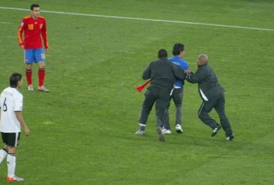 中新網(wǎng)7月8日電 世界杯安保問(wèn)題在遇挑戰(zhàn),在北京時(shí)間8日凌晨進(jìn)行的德國(guó)和西班牙的半決賽中,一名球迷竟然沖入球場(chǎng),導(dǎo)致比賽被迫中斷。