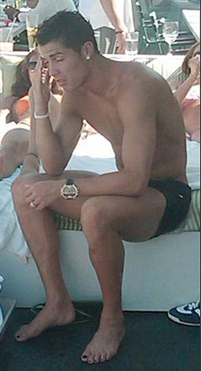 C•羅結(jié)束世界杯后,未有趁空檔多多陪伴親兒,反而飛往紐約度假,與俄羅斯模特兒女友莎爾克風(fēng)流快活,獨留兒子在葡萄牙交由親母照顧。C•羅在泳池曬太陽期間被拍下“艷照”,一身古銅色肌膚令不少女“粉絲”口水長流,但10只腳趾甲涂上較膚色更黑的甲油,比他的俊俏臉龐更搶鏡。C•羅身為“潮人”,應(yīng)會把打扮之道傳給剛出生的兒子。
