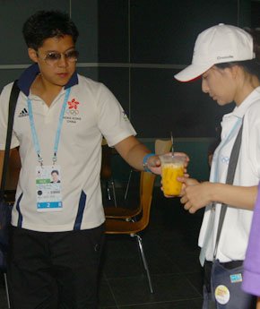 昨天下午新加坡烈日當頭,氣溫很高,在活動進行到一半時,體貼的霍啟剛還為郭晶晶買來了冰鎮飲料,并在活動結束時大方地來了個單獨合影。