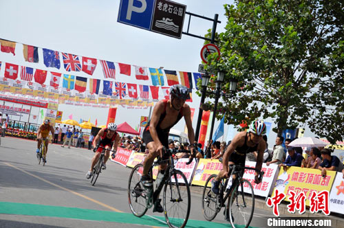 中新網北戴河9月4日電(王寶德 尹永吉 李曉霞)4日,2010年中國體育彩票北戴河鐵人三項大賽在北戴河老虎石公園開賽。來自英國、法國、日本和中國等九個國家23個城市的227名運動員同場競技,盡展“鐵人”風采。