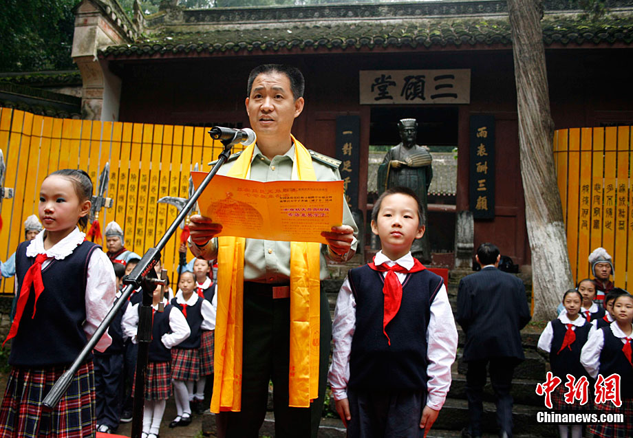 “夫君子之行,靜以修身,儉以養德……”9月25日上午,湖北襄樊市城區及各縣市區的各大中小學校百萬名學子,以校為單位,齊誦諸葛亮《誡子書》。此舉創下了新的吉尼斯世界紀錄,并獲吉尼斯總部代表現場頒發證書。《誡子書》是諸葛亮54歲臨終前寫給8歲兒子諸葛瞻的一封家書,成為后世歷代學子修身立志的名篇。其核心內容是教育人們要“寧靜致遠,淡泊明志”。在活動現場,襄樊籍航天員聶海勝表示非常崇拜諸葛亮,一部《誡子書》影響了一代又一代人。他還寄語青少年:修身養性,服務人民!張暢 攝