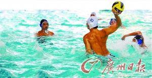 謝俊敏將出戰(zhàn)亞運(yùn)水球項(xiàng)目,圖為他和隊(duì)友在訓(xùn)練。 記者何波攝