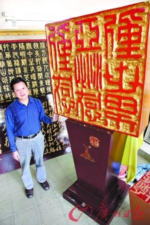 廣州日報11月4日報道(文/圖記者李立志)在廣州番禺有一位奇人郭勁帆,花了兩年時間精心制作的篆雕作品——高2.1米,寬1.3米的“亞運巨印”。亞運前夕,他想將這個可能是世界上最大的印章獻給亞運會。