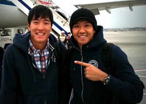 臺灣藝人“黑人”陳建州與劉翔同機(jī)抵達(dá)廣州。他也在第一時(shí)間將這一“幸運(yùn)”展示在微博上:“我一早飛到廣州的飛機(jī)上旁邊竟然坐的是‘劉翔’啊!一路上我們一直聊天,他還錄了一段給范范(陳建州未婚妻范瑋琪)祝福的話……到時(shí)跟大家分享吧,祝福他順利奪金。”