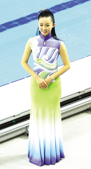 同其他大型活動的禮服不同,“行云流水”的面料有了突破——用泳衣和體操服那樣的彈性面料,代替了傳統的綢緞面料。與此同時,這樣的面料,不需要太多的剪裁,有了彈性,各種體型的禮儀小姐穿上去都合適。不過彈性面料也有不少,有些面料容易褪色,有些面料做出來顏色有偏差。最終,“行云流水”的面料選為滌綸。