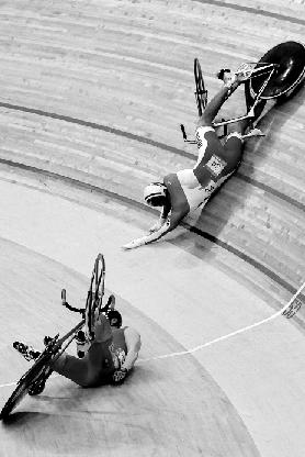 男子記分賽也出現類似情況。最后一個彎道,韓國選手赪浩成與烏茲別克選手沙耶霍夫發生激烈碰撞,后者被自行車碾過。