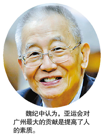 魏紀中表示,亞運會如今確實起到提升廣州城市“軟件”的作用,但亞運以后的維持很重要。“亞運期間做到了,但亞運后還能做到才能成為真正的財富。如何能維持呢?我認為主要靠政府,政府要采取措施。亞運會,無論是硬件還是軟件,關鍵在維持和發展,不維持,說不上發展。這是亞運會最重要的一條經驗。”