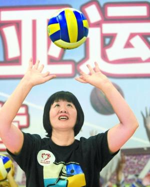 盡管與亞運會賽事無緣,但郎平昨天卻在廣州通過手把手教授來自全國各地貧困地區(qū)的孩子們打排球,來表達(dá)她對公益活動的熱情。