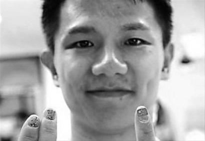 陳一冰的美甲,左手食指是國旗,右手是“冰”和“娜”以示對女友何雯娜的愛意