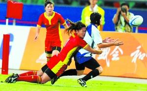 中國隊員孫婷婷死死抱住球,敏捷地閃開強壯的“追兵”,一路狂奔沖過底線。只要她將球按在地上,中國隊就能在最后時刻反超對手,奪得亞運會女子7人制橄欖球的冠軍。就在全場觀眾開始振臂歡呼時,孫婷婷手中的球卻掉落在地——根據(jù)規(guī)則,此球不得分。中國隊今天最終以14比17不敵哈薩克斯坦隊,獲得亞軍。