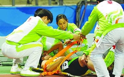23日晚,廣州亞運會田徑比賽進(jìn)入第三日爭奪,在男子4×400預(yù)賽中,伊朗選手阿漢加里因發(fā)力過猛,接力棒打在了“要害部位”,隨后被送往醫(yī)院救治。木 易