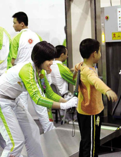 在體育場館安檢口工作的志愿者們,需要對每一位觀眾進行前、后身從頭到腳的掃描,這意味著每檢查一個觀眾就要下蹲兩次。詹婷婷是廣東警官學院即將畢業的大三學生,作為亞運志愿者,在廣州體育館安檢口的崗位上,她不斷地做著深蹲動作,最多的一天超過2600次。